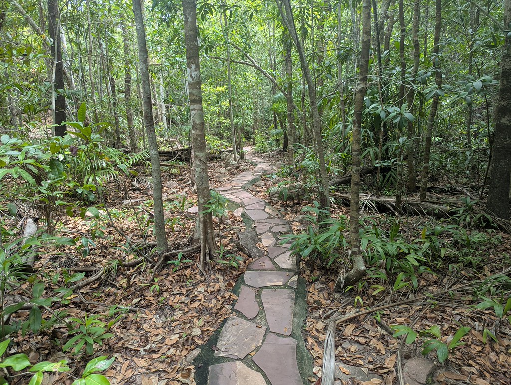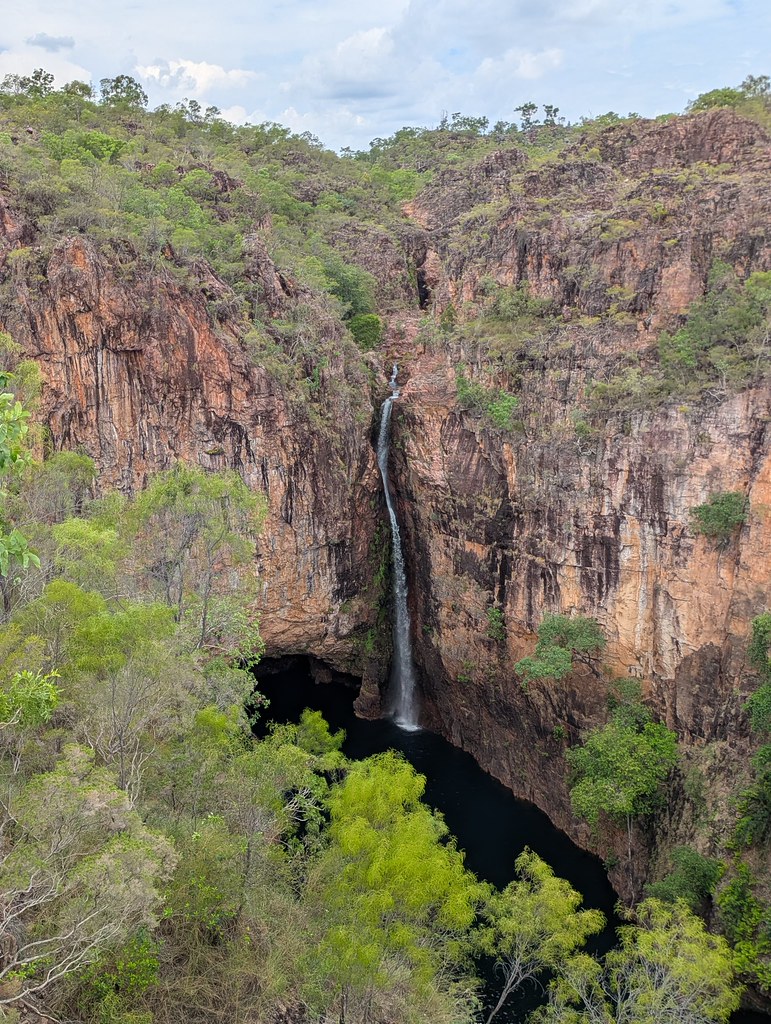 Moving on, our next stop was to Tolmer Falls where we had the option of following a steep track down to the falls or a a shorter walk to the lookout point. As we’d already walked a considerable distance in the tropical, humid conditions we opted for the lookout point which offered us good views of the falls. From this viewpoint we could see the falls cascading into the pool far below, framed by rugged cliffs and lush forest.